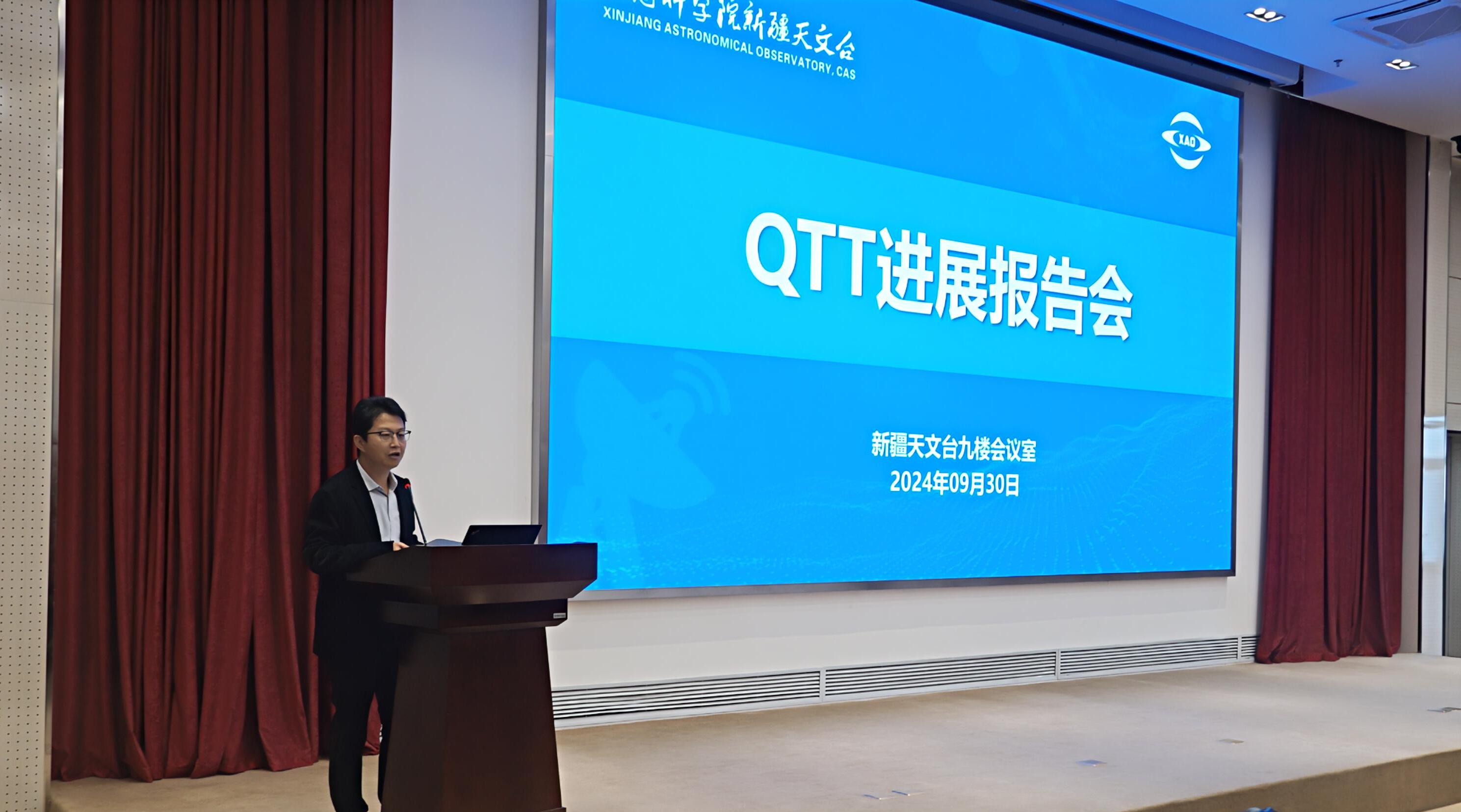 自奇台射电望远镜项目(QiTai radio Telescope-“QTT”)开工建设以来,我们迎来了工程建设的第一个里程碑节点——天线轨道基础工程的圆满完成。这标志着QTT项目正式迈入了天线主体安装的新阶段。借此机会,新疆天文台于9月30日在本部举行了一场面向全体职工与学生的QTT项目报告会。会议由科技计划处处长韩伟主持,台领导、全体员工及学生共200余人出席。