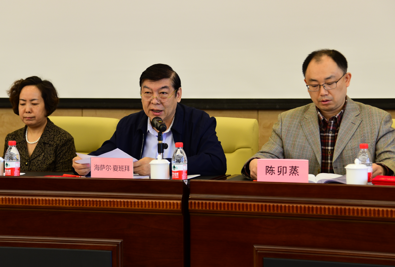 自治区科协党组成员、副主席海萨尔·夏班拜讲话