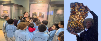 参观中,老师向母子俩详细介绍了陨石的知识。