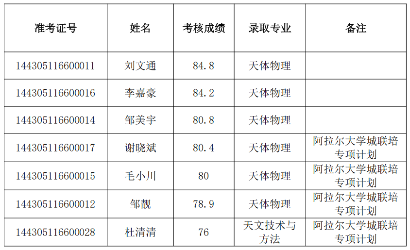 中国科学院新疆天文台2025年博士研究生招生“硕转博”拟录取名单