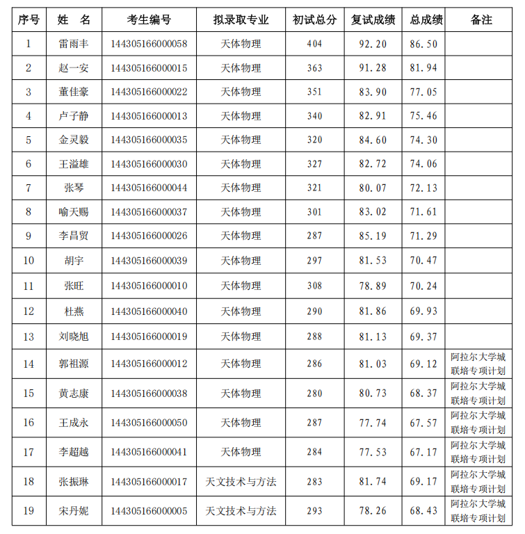 根据初试及复试情况,经台招生领导小组决定, 2025年硕士研究生招生一志愿拟录取考生为: