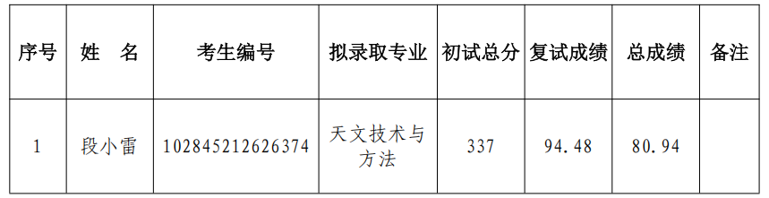 新疆天文台2025年硕士招生调剂志愿拟录取名单(第一批)
