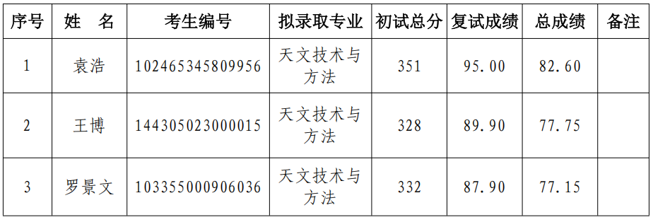 新疆天文台2025年硕士招生调剂志愿拟录取名单(第二批)