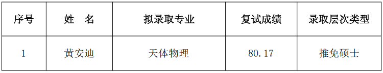 根据教育部、中国科学院大学相关文件精神,我台坚持公开、公平、公正原则,在对推免申请者进行全面考查综合评价的基础上择优选拔。根据报名及复试情况,确定2026年推免生拟录取考生名单公示如下: